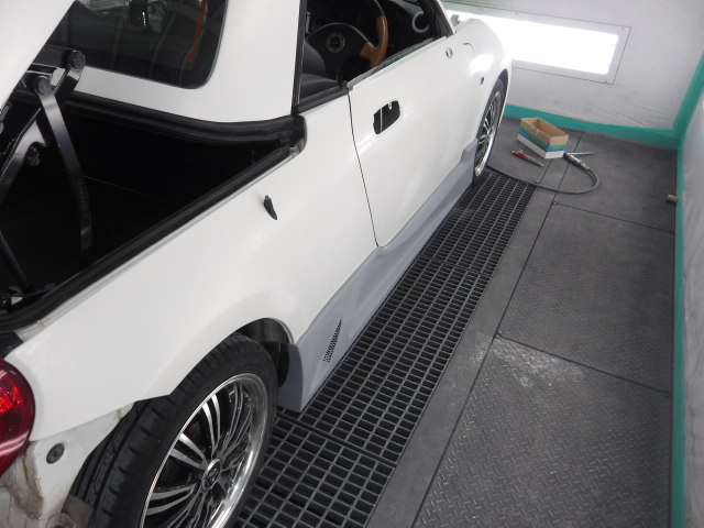 サイドのスポイラーのフィッティングの様子です。