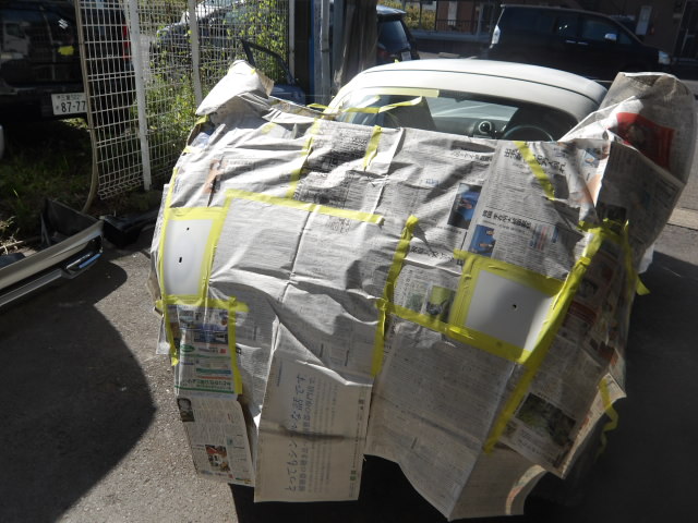 コペンはトランクなど外すと後が大変なので、画像のように少しずつ浮かせて塗装をしました。
